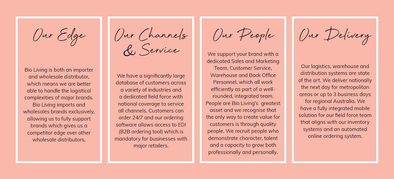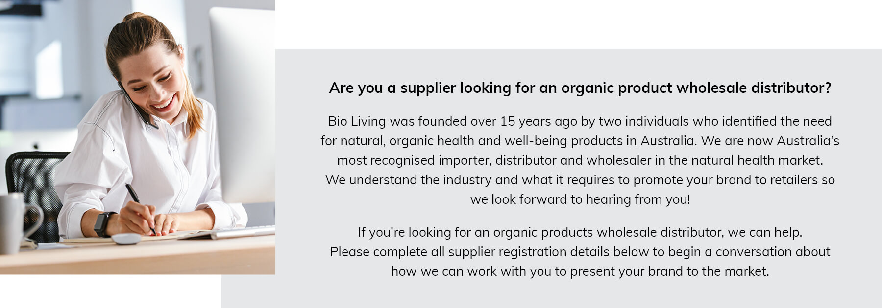 Bio Living was founded in 2004 by two individuals who identified the need for natural, organic health and well-being products in Australia. We are now Australia’s most recognised importer, distributor and wholesaler in the natural health market. We understand the industry and what it requires to promote your brand to retailers so we look forward to hearing from you!